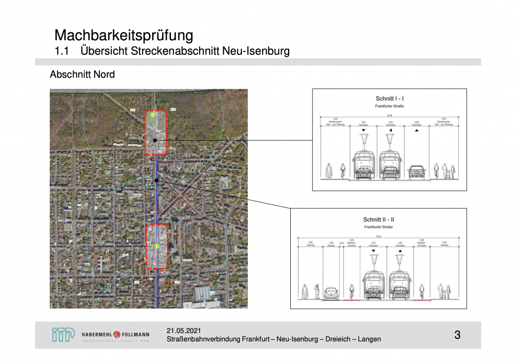 Am 01. September 2021 wurde das vollständige Ergebnis der Studie dem Bauausschuss der Stadt Langen vorgelegt und im Ratsinfosystem veröffentlicht. Die für Neu-Isenburg interessante Darstellung der Straßenraumaufteilung in der Frankfurter Straße soll hier kurz anhand ausgewählter Folien der Studie vorgestellt werden. Bei den Studienergebnissen handelt es sich um eine technische Untersuchung, die politische Diskussion dazu steht noch aus.