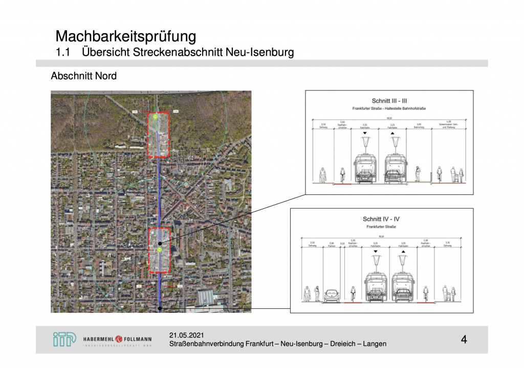 In Neu-Isenburg sind nach der Studie vier Straßenbahnhaltestellen vorgesehen: