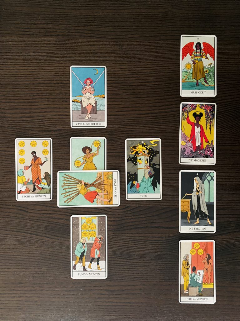 Das gezeigte Kartendeck ist das ‘Modern Witch Tarot’ von Lisa Sterle.