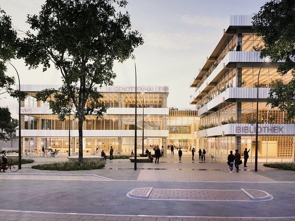 Der Architekturwettbewerb zum Umbau der Hugenottenhalle ist beendet! Gewonnen hat das Büro AFF aus Berlin in Kooperation mit Landschafts.Architektur Birgit Hammer. Für ihren Entwurf entschied sich die Jury aus Fachpreisrichtern (Architekten) und Sachpreisrichtern (Politiker und Vertreter der städtischen Fachbereiche) einstimmig! Der Entwurf überzeugte die Jury durch die große Wiedererkennbarkeit der Halle und durch einen flexibel nutzbaren Aufbau.