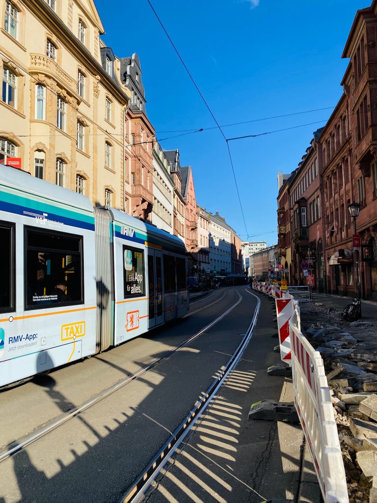 Ähnlich wie in Mainz verdrängte auch in hier die Straßenbahn den Autoverkehr in die umliegenden Straßen. Dauerhafter Lärm und Vibrationen werden teilweise als störend empfunden – ein Problem nicht nur für Anwohner, sondern auch für historische Gebäude. Grundsätzlich ist die Braubachstraße aber auch eine sehr belebte Straße, wer gerne ruhig wohnt, wird nicht hier hinziehen. Das führt wieder zu der Frage vom Anfang: Wie lebendig hätte wir unsere Frankfurter Straße eigentlich gerne? Aktuell freuen sich die Anwohner schon über eine sehr geringe Lärmreduzierung durch Tempo 30. Mehr Außengastronomie gefällt in der Regel allen außer den Anwohnern. Hier muss das richtige Maß gefunden werden, vor allem aber müssen wir uns endlich auf gemeinsame Ziele verständigen.