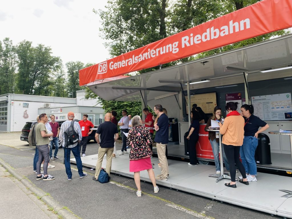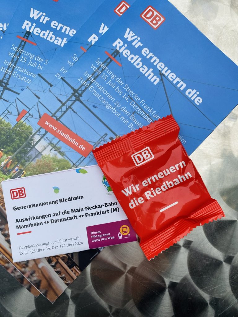 Nun soll die Riedbahn aber erstmal zum „Pilotprojekt für ein neues Hochleistungsnetz“ werden – durch eine Generalsanierung der Strecke. Dabei sollen die technischen Anlagen erneuert und Bahnhöfe entlang der Strecke modernisiert werden. Um diese Arbeiten durchführen zu können, wird die gesamte Strecke vom 15. Juli bis 14. Dezember gesperrt. Um die Auswirkungen der Sperrung und der Bauarbeiten für Zeppelinheim näher zu erläutern, war am 20. Juni 2024 ein Infomobil der Deutschen Bahn vor Ort. Wir sind mit dem Rad hingefahren und haben uns informiert.