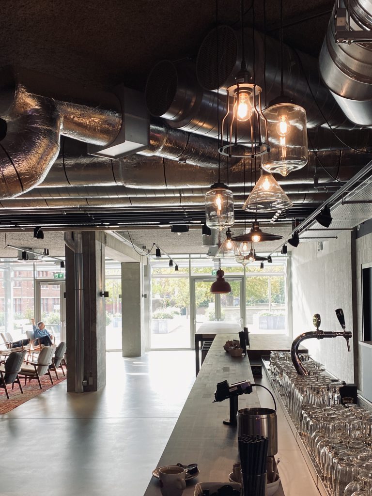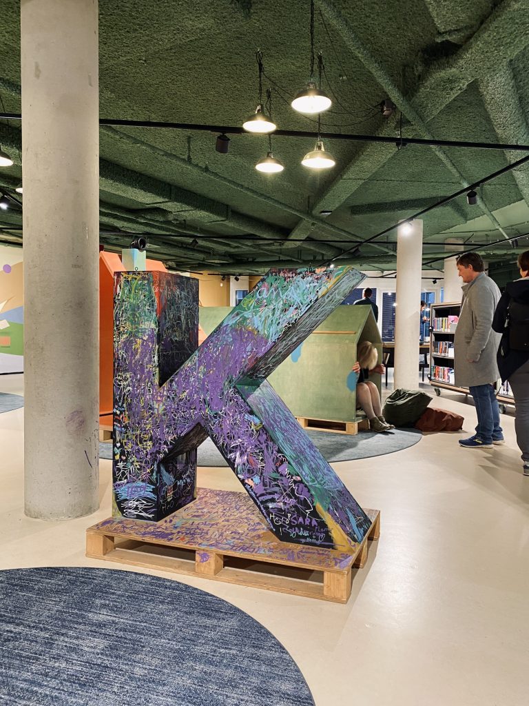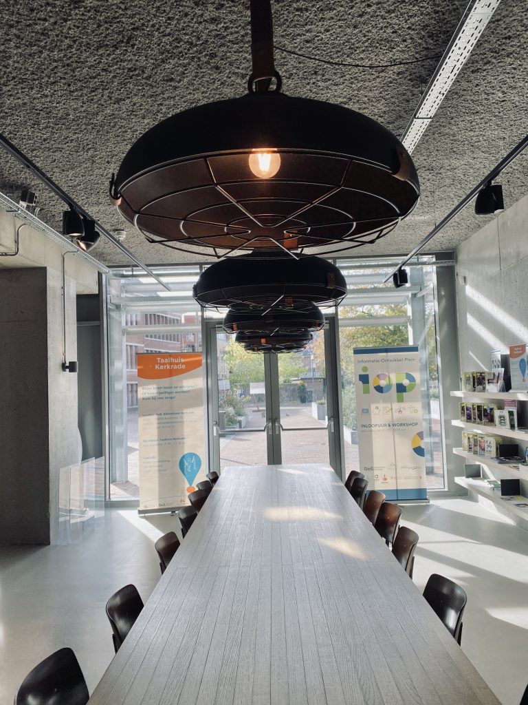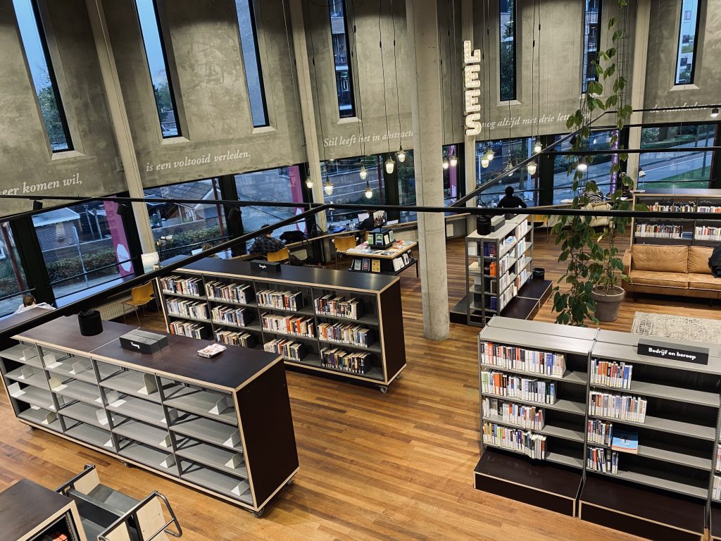 Eine Bibliothek, ein Theater, eine Galerie, eine Musikschule, ein Kunstzentrum, ein Makerspace und ein Café bilden auf etwa 10.000 Quadratmetern gemeinsam das Zentrum für Kunst und Kultur in Ede. Die Kernstadt hat etwa 70.000 Einwohner, alle Stadtteile zusammen 120.000. Unter der kreativen Leitung des Architekten Aat Vos, Spezialist für die Umgestaltung von Bibliotheken, Theatern, Kulturhäusern wurde ‚Cultura’ in zu einem modernen Dritten Ort umgebaut. Alle Bereiche arbeiten hier zusammen, die räumliche Trennung ist aufgehoben – doch bis hin zum echten interdisziplinären Arbeiten war es ein jahrelanger Prozess, erzählte uns der Leiter des Weiterbildungsbereichs Rutger Schehrer. In einer umfangreichen Führung besichtigten wir Bereiche der Bibliothek, das Café, eine Töpferwerkstatt, ein Maler-Atelier, die kleine Studiobühne und (heimlich bei einer Generalprobe) das Theater. Auch das Back-Office, die Garderoben und individuell gestaltete Besprechungsräume für verschiedene Anforderungen gehörten dazu. 21,7% aller Einwohner sind Mitglied des Zentrums. Umgerechnet auf Neu-Isenburg wären das über 8.600 Personen.